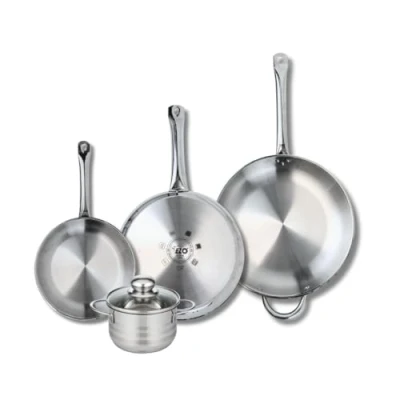 DESCRIPTION: This set includes three stainless steel cooking pans of 24 cm, 28 cm and 32 cm without coating as well as a 14 cm stewpan made of stainless steel without coating offering strength and compatibility with PFAS free induction SMALL +: Versatile uncoated stainless steel set provides excellent thermal conductivity for fast and even cooking on all types of hobs COMPOSITION: Set includes 3 stainless steel pans without coating of 24, 28 and 32 cm as well as a 14 cm uncoated stainless steel pot all without PFAS DIMENSIONS: The pans measure 24 cm, 28 cm and 32 cm while the Dutch oven has a diameter of 14 cm, offering an ideal variety for all your culinary preparations USE: To cook with this set, preheat the pans over low to medium heat, add a little oil or fat if necessary, then cook your ingredients until they reach the desired cooking in the pans MAINTENANCE: To preserve the shine and robustness of your pan and pot set, clean them with warm soapy water after each use and avoid abrasive pads so as not to scratch stainless steel surfaces, Weight: 10.3837725402 pounds, Manufacturer: Fackelmann