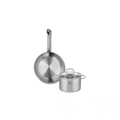 DESCRIPTION: This set includes a 24 cm cooking pan and a 16 cm saucepan made of robust stainless steel compatible with induction and without coating or PFAS providing excellent thermal conductivity for healthy and efficient cooking SMALL +: Sturdy stainless steel set without coating ideal for healthy and efficient cooking on all types of hobs including induction COMPOSITION: This set includes a 24 cm cooking pan and a 16 cm saucepan made of sturdy stainless steel without coating or PFAS providing excellent heat resistance and a healthy cooking surface for your culinary preparations Dimensions: The cooking pan measures 24 cm in diameter and the pot has a diameter of 16 cm, thus offering ideal dimensions for your cooking preparations USE: To cook your food, heat the 24 cm cooking pan or 16 cm Dutch oven on a suitable heat source, add a little oil if necessary, then place the ingredients to be cooked while monitoring the cooking MAINTENANCE: To maintain your stainless steel products, hand wash with mild detergent, avoid abrasive sponges and dry them immediately to preserve their luster and robustness, Weight: 4.739938633 Pounds, Manufacturer: Fackelmann