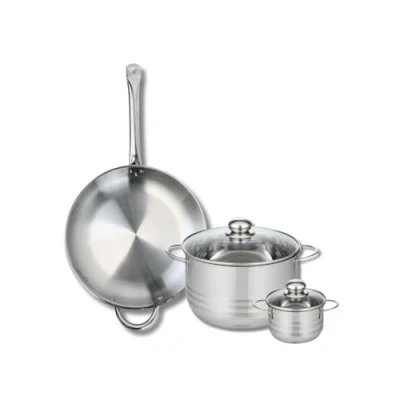 DESCRIPTION: Set of 1 stainless steel cooking pan of 32 cm and 2 stainless steel pots of 12 and 24 cm with robustness and induction compatibility all without coating or PFAS for healthy and efficient cooking SMALL +: Robust stainless steel set without coating for healthy cooking and excellent heat distribution COMPOSITION: This set includes a 32 cm cooking pan and two 12 and 24 cm saucepans all made of stainless steel without coating and PFAS free offering robustness and excellent thermal conductivity for efficient cooking Dimensions: The cooking pan measures 32 cm while the pots have diameters of 12 cm and 24 cm, thus offering an ideal variety for your culinary preparations USE: For optimal cooking, use the cooking pan to sauté your food and the stewpots to simmer or cook various dishes on a suitable heat source, including induction hobs MAINTENANCE: To maintain your stainless steel pan and pot set, it is recommended to wash them by hand with a soft sponge and mild detergent, then dry them immediately to preserve their shine and prevent water stains, Weight: 8.7303055752 pounds, Manufacturer: Fackelmann