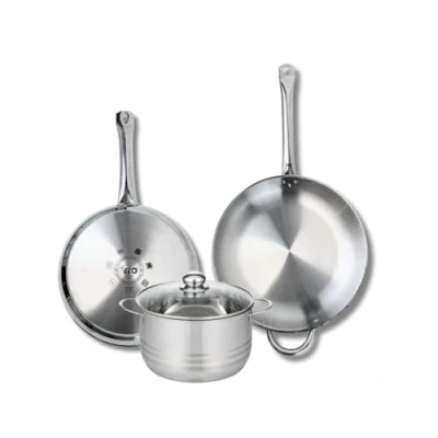 DESCRIPTION: This set includes two stainless steel cooking pans of 28 and 32 cm without coating as well as a 20 cm stewing pot made of stainless steel without coating, all compatible with induction and without PFAS for increased robustness SMALL +: Heavy duty stainless steel set without coating designed for exceptional durability and healthy cooking without PFAS COMPOSITION: This set includes two stainless steel cooking pans and a stainless steel pot all without coating and PFAS free guaranteeing robustness and performance in the kitchen Dimensions: The cooking pans measure 28 cm and 32 cm while the pot has a diameter of 20 cm offering versatility for all your culinary preparations USE: For a successful cooking, use the stainless steel pans on induction or gas hobs to sear your food while using the pot to cook with water or steam, ensuring even and tasty cooking MAINTENANCE: To preserve the shine and robustness of your stainless steel pan and pot set, wash them by hand with a mild detergent and a non-abrasive sponge, then dry them thoroughly after each use, Weight: 9.149183873 Pounds, Manufacturer: Fackelmann