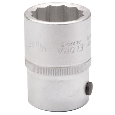 General description This is a 3/4-inch square drive bi-hexagon socket designed for professional use. It features a durable construction from chrome vanadium steel, which is hardened, tempered, and chrome plated for corrosion resistance. The socket is suitable for various fastening tasks and provides a secure fit with its chamfered end for positive nut engagement. Technical specifications Size: 1 1/16 inches (AF) Drive size: 3/4 inch square Material: Chrome vanadium steel Finish: Chrome plated for corrosion protection Standards: Manufactured according to DIN 3124/ISO 2725 and DIN 3120/ISO 1174 Compatibility and accessories Compatible with standard 3/4-inch square drive tools Features a hole for driving accessories with a locking pin Some sizes include a knurled band for improved grip Installation Insert the socket onto a compatible 3/4-inch drive ratchet or wrench Ensure the socket is properly seated for secure operation Usage Use for tightening or loosening nuts and bolts with a