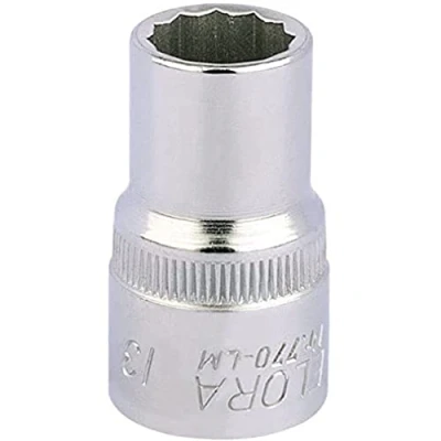 Description This 13mm bi-hexagon socket is designed for use with 1/2-inch square drive tools. Made from hardened chrome vanadium steel, it offers durability and corrosion resistance. The socket features a chamfered end for easy nut engagement and a hole for a spring-loaded driving accessory, ensuring secure and precise operation. It is suitable for professional applications and conforms to DIN 3124/ISO 2725 and DIN 3120/ISO 1174 standards. Technical Specifications Material: Hardened chrome vanadium steel Size: 13mm Drive size: 1/2 inch square drive Type: Bi-hexagon socket Standards: DIN 3124/ISO 2725, DIN 3120/ISO 1174 Compatibility and Accessories Compatible with 1/2-inch drive tools Features a hole for spring-loaded driving accessories Installation Attach the socket securely onto a compatible 1/2-inch drive ratchet or wrench Usage Use for tightening or loosening nuts and bolts with a bi-hexagon profile Ensure proper fit to prevent slipping or damage Other Information Manufactured to