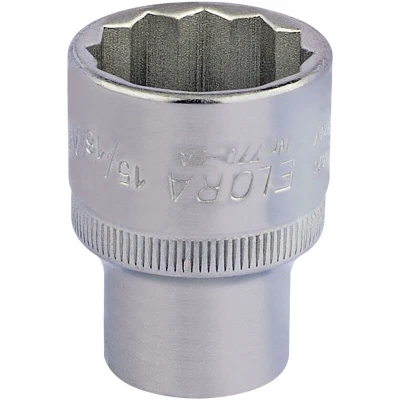 General description This 15/16 Inch Square Drive Bi-Hexagon Socket (24450) is a heavy-duty tool designed for automotive and mechanical applications. Manufactured by Elora, this socket is built for professional use and offers exceptional durability and performance. Technical specifications Size: 15/16 inch Drive: 1/2 inch square Material: Chrome vanadium steel Finish: Chrome plated Features: Chamfered end, hole for driving accessory with spring-loaded ball Compatibility and accessories Compatible with standard square drive tools Designed for use with Elora bi-hexagon fasteners Suitable for various professional and DIY applications Installation Insert the socket onto the corresponding square drive of your ratchet or wrench Ensure it is securely attached before use Usage Use for tightening or loosening nuts and bolts with compatible sizes Ideal for professional mechanical work and home improvement projects