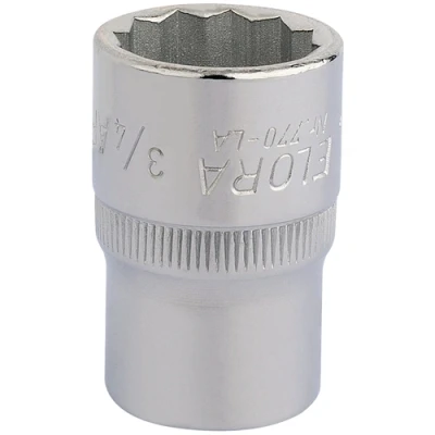 General description This is a professional-quality bi-hexagon socket designed for 1/2 inch square drive applications. It is suitable for use with various tools and provides a secure fit for fasteners. Technical specifications Size: 1/2 inch square drive, compatible with 3/4 inch and 1/2 inch sizes Material: Chrome vanadium steel, hardened and tempered for durability Finish: Chrome plated for corrosion resistance Standards: Manufactured in accordance with DIN 3122 and ISO 3315 specifications Compatibility and accessories Compatible with standard 1/2 inch drive tools Designed for use with various sockets and accessories that fit a 1/2 inch square drive Installation Insert the socket onto the corresponding drive tool Ensure the socket is properly seated before applying torque Usage Use with appropriate ratchets or drive tools for tightening or loosening fasteners Chamfered end allows for easy nut entry and positive engagement Spring-loaded hole for driving accessories enhances
