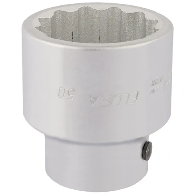 General description This is a 50mm bi-hexagon socket designed for 1-inch square drive tools. It is suitable for professional use and compatible with various fastening applications requiring a bi-hexagon (Allen) head. Technical specifications Size: 50mm (2 inches) Drive Size: 1 inch square drive Material: Chrome vanadium steel Finish: Chrome plated for corrosion resistance Standards: Manufactured according to DIN 3124/ISO 2725 and DIN 3120/ISO 1174 Compatibility and accessories Compatible with 1-inch drive tools Features a hole for driving accessories with a locking pin Installation Insert the socket onto a compatible 1-inch square drive tool Ensure the socket is securely attached before use Usage Use for tightening or loosening nuts with a bi-hexagon (Allen) head Designed for professional and heavy-duty applications Other information Professional quality, manufactured from chrome vanadium steel, hardened, tempered, and chrome plated for corrosion protection Chamfered end allows
