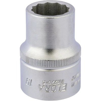 General description This 3/4-inch drive bi-hexagon socket is designed for professional use, offering high durability and precision. Made from chrome vanadium steel, it is hardened, tempered, and chrome plated to resist corrosion. The socket features a chamfered end for easy and secure nut engagement, and a hole for a driving accessory with a locking pin. Some sizes include a knurled band for improved grip. Technical specifications Size: 19mm Drive size: 3/4 inch Material: Chrome vanadium steel Finish: Chrome plated for corrosion resistance Standards: DIN 3124/ISO 2725 and DIN 3120/ISO 1174 Compatibility and accessories Compatible with 3/4-inch drive ratchets and extensions Includes a hole for attaching a driving accessory with a locking pin Some sizes feature a knurled band for better grip Installation Insert the socket onto a compatible 3/4-inch drive ratchet or extension Ensure the socket is securely attached before use Usage Use for tightening or loosening nuts and bolts with a