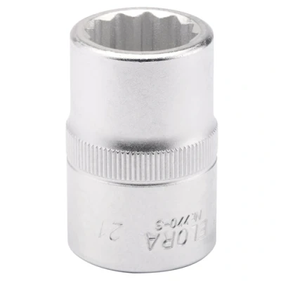 General description This 21mm 3/4-inch square drive bi-hexagon socket is designed for professional use, offering high durability and precision. Made from hardened chrome vanadium steel, it provides excellent strength and corrosion resistance. The socket features a chamfered end for easy nut engagement and a hole for a locking pin accessory. Some sizes include a knurled band for improved grip. It is suitable for various DIY and home improvement tasks and is sold individually. Technical specifications Material: Hardened chrome vanadium steel Size: 21mm (3/4 inch) Type: Bi-hexagon socket Drive size: 3/4 inch square Standards: DIN 3124/ISO 2725 and DIN 3120/ISO 1174 Features: Chamfered end, hole for locking pin, optional knurled grip band Compatibility and accessories Compatible with 3/4-inch drive tools Designed to fit bi-hexagon nuts and bolts Can be used with locking pins for secure fastening Installation Insert the socket onto a compatible 3/4-inch drive ratchet or wrench Ensure the