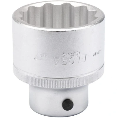 General description This is a high-quality 3/4-inch square drive bi-hexagon socket designed for professional use. It is compatible with various tools and provides a precise fit and durability for demanding applications. Technical specifications Size: 47mm (3/4 inch drive) Material: Chrome vanadium steel, hardened and tempered Finish: Chrome plated for corrosion resistance Standards: Manufactured according to DIN 3124/ISO 2725 and DIN 3120/ISO 1174 Design features: Chamfered end for easy nut entry, hole for driving accessory with locking pin, some sizes include a knurled band for better grip Compatibility and accessories Compatible with standard 3/4-inch drive tools Designed to fit bi-hexagon nuts and bolts Can be used with driving accessories that feature a locking pin Installation Insert the socket onto a compatible 3/4-inch drive ratchet or wrench Ensure the socket is securely attached before use Usage Use for tightening or loosening bi-hexagon nuts and bolts Apply force evenly to