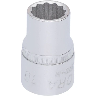 General description This is a professional-quality 10mm (3/8 inch) square drive bi-hexagon socket designed for durability and precision. Made from chrome vanadium steel, it is hardened, tempered, and chrome-plated to resist corrosion. The socket features a chamfered end for easy and secure nut engagement, and a hole with a spring-loaded ball bearing for driving accessories. It is suitable for various DIY and home improvement tasks. Technical specifications Size: 10mm (3/8 inch) Material: Chrome vanadium steel Finish: Chrome-plated and polished Design: Bi-hexagon socket with knurled surface for grip Features: Chamfered end, hole for driving accessory with spring-loaded ball bearing Compatibility and accessories Compatible with standard 3/8 inch drive tools Suitable for use with various nuts and bolts requiring a 10mm socket Installation Insert the socket onto a compatible 3/8 inch drive ratchet or wrench Ensure the socket is securely attached before use Usage Use for tightening or
