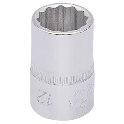 General description This is a professional-quality 3/8" drive metric bi-hexagon socket, specifically a 12mm size. It is suitable for precise and efficient work in various mechanical and DIY applications. Technical specifications Size: 12mm Drive size: 3/8 inch Material: Chrome vanadium steel Finish: Chrome plated Manufactured according to DIN 3124/ISO 2725 and DIN 3120/ISO 1174 standards Compatibility and accessories Compatible with 3/8" drive tools Features a hole for driving accessories with a spring-loaded ball bearing Installation Insert the socket onto a compatible 3/8" drive ratchet or wrench Ensure the spring-loaded ball bearing clicks into place for secure attachment Usage Use for tightening or loosening nuts and bolts with a 12mm size Ideal for professional and DIY mechanical tasks requiring precise fit and durability Other information Sold individually (loose) This is a Draper product.