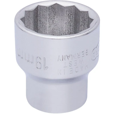 General description This 19mm bi-hexagon socket is designed for 3/8-inch drive tools, suitable for professional use. It is made from high-quality chrome vanadium steel that is hardened, tempered, and chrome plated to resist corrosion. The socket features a chamfered end for easy and secure nut engagement and a hole for driving accessories with a spring-loaded ball bearing for secure attachment. Manufactured according to DIN 3124/ISO 2725 and DIN 3120/ISO 1174 standards, it ensures precise and reliable performance. Technical specifications Size: 19mm Drive size: 3/8 inch Material: Chrome vanadium steel Finish: Chrome plated Standards: DIN 3124/ISO 2725, DIN 3120/ISO 1174 Compatibility and accessories Compatible with 3/8-inch drive ratchets and extension bars Designed for use with standard bi-hexagon nuts and bolts Installation Insert the socket onto a compatible 3/8-inch drive ratchet or wrench Ensure the socket is securely attached using the spring-loaded ball bearing if applicable