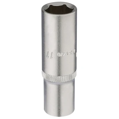 General description This 11mm extra deep 1/4-inch drive socket is designed for professional use, made from hardened and tempered chrome vanadium steel for durability and corrosion resistance. The socket features a chamfered end for easy nut engagement and a hole for a spring-loaded ball bearing to secure accessories. With an overall length of 50mm, it is suitable for deep socket applications. Technical specifications Size: 11mm Drive size: 1/4 inch Type: Deep socket Material: Chrome vanadium steel Length: 50mm Manufactured according to DIN 3124/ISO 2725 and DIN 3120/ISO 1174 standards Compatibility and accessories Compatible with 1/4-inch drive ratchets and extensions Suitable for use with spring-loaded ball bearing accessories for secure fitting Installation Attach the socket to a compatible 1/4-inch drive ratchet or wrench Ensure the socket is properly seated on the nut or bolt before turning Usage Use for tightening or loosening nuts and bolts with an 11mm size Ideal for deep