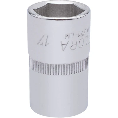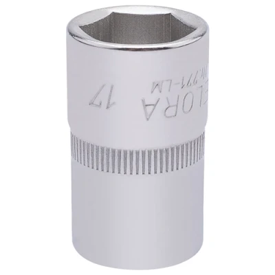 General description This is a professional-quality 17mm square drive Elora hexagon socket designed for durability and precision. Made from hardened and tempered chrome vanadium steel, it offers excellent strength and corrosion resistance. The socket features a chamfered end for easy and secure nut engagement and a hole for driving accessories with a spring-loaded ball bearing to ensure a secure fit. It is sold individually and is suitable for various DIY and home improvement tasks. Technical specifications Size: 17mm Drive type: 1/2 inch square drive Material: Chrome vanadium steel Finish: Chrome plated for corrosion protection Compatibility and accessories Compatible with standard 1/2 inch drive tools Designed to fit hexagon nuts and bolts Features a hole for driving accessories with a spring-loaded ball bearing Installation Insert the socket onto a compatible ratchet or drive tool Ensure the socket is securely attached before use Usage Use for tightening or loosening hexagon nuts
