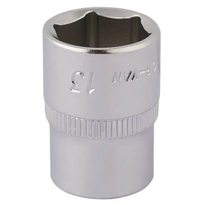 General description This 13mm hexagon socket is designed for 1/4-inch square drive tools, making it suitable for various DIY and home improvement tasks. Made from durable chrome vanadium steel, it offers high strength and corrosion resistance. The socket features a chamfered end for easy nut engagement and a hole for driving accessories with a spring-loaded ball bearing, ensuring secure attachment and easy removal. Technical specifications Size: 13mm Drive size: 1/4 inch square Material: Chrome vanadium steel Finish: Chrome plated for corrosion protection Standards: DIN 3124/ISO 2725 and DIN 3120/ISO 1174 Compatibility and accessories Compatible with 1/4-inch drive ratchets, wrenches, and torque tools Designed to fit standard hex nuts and bolts of 13mm size Features a hole for attaching driving accessories with a spring-loaded ball bearing Installation Insert the socket onto a compatible 1/4-inch drive tool Ensure it clicks into place securely Use with appropriate ratchet or wrench