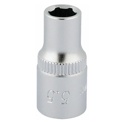 General description This 1/4" drive 5.5mm hex socket is designed for professional use. Made from hardened and tempered chrome vanadium steel, it offers durability and corrosion resistance. The socket features a chamfered end for easy nut engagement and a hole for a spring-loaded ball bearing to secure accessories. Technical specifications Size: 5.5mm hex Drive size: 1/4 inch Material: Chrome vanadium steel Finish: Chrome plated Standards: DIN 3124/ISO 2725, DIN 3120/ISO 1174 Compatibility and accessories Compatible with 1/4" drive tools Features a hole for spring-loaded ball bearing to secure accessories Installation Insert the socket onto a compatible 1/4" drive ratchet or wrench Ensure the socket is properly seated before use Usage Use for tightening or loosening nuts and bolts with 5.5mm hex heads Suitable for professional and DIY applications requiring precision and durability
