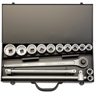 General description This is a professional-quality socket set made from durable chrome vanadium steel, which is hardened, tempered, and chrome plated for corrosion resistance. It includes a comprehensive selection of imperial bi-hexagon sockets, a reversible ratchet, an extension bar, and a sliding T-bar, all stored in a heavy-duty steel case for easy organization and transport. Technical specifications Material: Chrome vanadium steel, hardened and tempered Finish: Chrome plated for corrosion protection Socket sizes: 7/8", 15/16", 1", 1.1/16", 1.1/8", 1.1/4", 1.5/16", 1.7/16", 1.1/2", 1.5/8", 1.13/16", 2" AF Ratchet: Reversible with push-through coupler Extension bar: 400mm length Additional tool: Sliding T-bar Compatibility and accessories Compatible with standard imperial socket sizes Includes a heavy gauge steel storage case for organization Installation No installation required; tools are ready to use out of the case. Usage Ideal for professional and DIY mechanical tasks involving