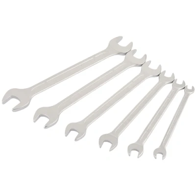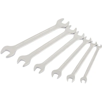 General description This set includes six professional-quality open-end spanners designed for durability and precision. Forged from chrome vanadium steel, each spanner is hardened, tempered, and chrome plated to resist corrosion. The jaws feature accurate face openings and are offset at 15 degrees for easier access in tight spaces. The set is conveniently stored in a durable wallet for organized storage and transport. Technical specifications Material: Chrome vanadium steel Finish: Chrome plated for corrosion resistance Number of pieces: 6 Sizes: 6 x 7mm, 8 x 9mm, 10 x 11mm, 12 x 13mm, 14 x 15mm, 16 x 17mm Offset angle: 15 degrees Compatibility and accessories Compatible with standard metric fasteners Includes a storage wallet for organization Installation No installation required; tools are ready to use out of the box. Usage Suitable for professional and DIY tasks involving metric fasteners. Ideal for tightening or loosening nuts and bolts in various applications. Other information