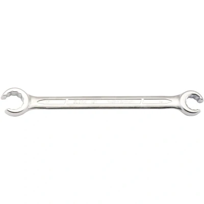 General description This is a high-quality flare nut spanner designed for professional use. It is made from hardened and tempered chrome vanadium steel, ensuring durability and strength. The spanner features a chrome plating that provides corrosion resistance. Its jaws are set at a 15-degree angle, making it suitable for working on compression nuts in various systems. Technical specifications Material: Chrome vanadium steel, hardened and tempered Finish: Chrome plated for corrosion protection Size: 14mm x 17mm Jaw angle: 15 degrees Compatibility and accessories Designed for use on compression nuts in petrol and diesel injection pipes Suitable for hydraulic, gas, and refrigeration systems Installation No installation required; this is a hand tool used directly on nuts and fittings. Usage Use the spanner to tighten or loosen compression nuts on injection pipes, hydraulic systems, or refrigeration components. Ensure the tool fits properly to avoid damaging the nuts. Other information