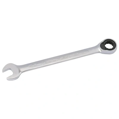 General description This is a set of metric ratcheting combination spanners designed for efficient and easy fastening. The open end is set at 15°, allowing better access in tight spaces. The ring end features a 72-tooth ratcheting mechanism that requires only a 5° movement to turn the fastener, making it ideal for confined areas. Crafted from durable chrome vanadium steel, these spanners are hardened, tempered, and finished with a matte chrome plating for corrosion resistance and long-lasting performance. Technical specifications Size: 12mm Open end angle: 15° Ring end: 72-tooth ratcheting mechanism Ratcheting movement: 5° Material: Chrome vanadium steel Finish: Matte chrome plating Compatibility and accessories Compatible with standard metric fasteners Suitable for use with ratchet handles and extension bars Installation No installation required; simply select the appropriate size and attach to a ratchet handle or wrench for use. Usage Use the open end for quick fastening or