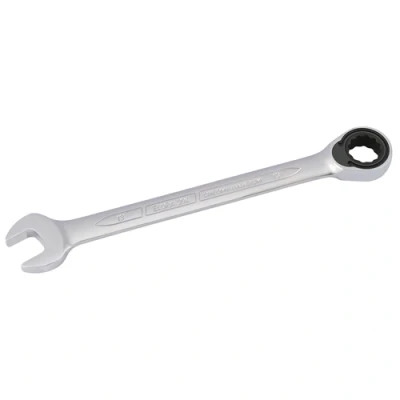 General description This is a ratcheting combination spanner designed for efficient tightening and loosening of fasteners. It features an open end set at 15 degrees and a ring end with a 72-tooth ratcheting mechanism, requiring only 5 degrees of movement to turn a fastener. Made from durable chrome vanadium steel, it is hardened, tempered, and finished with a matte chrome plating for corrosion resistance and longevity. Technical specifications Size: 13mm Open end angle: 15 degrees Ratcheting mechanism: 72 teeth Minimum movement to turn fastener: 5 degrees Material: Chrome vanadium steel Finish: Matte chrome plating Compatibility and accessories Compatible with standard metric fasteners Suitable for use with various socket sets and extensions Installation No installation required; ready to use out of the box Usage Use the open end for quick access in tight spaces Use the ratcheting ring end for continuous turning without removing the tool from the fastener Ideal for professional and