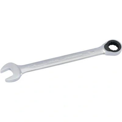 General description This is a metric ratcheting combination spanner designed for efficient tightening and loosening of fasteners. It features an open end set at 15°, allowing for better access in tight spaces. The ring end is equipped with a 72-tooth ratcheting mechanism that requires only a 5° movement to turn the fastener, making it ideal for confined areas. The tool is forged from durable chrome vanadium steel, which is hardened, tempered, and finished with a matte chrome plating for corrosion resistance and long-lasting performance. Technical specifications Size: 18mm Open end angle: 15° Ring end: 72 teeth ratcheting mechanism Ratcheting movement: 5° Material: Chrome vanadium steel Finish: Matte chrome plating Compatibility and accessories Compatible with standard 18mm fasteners Suitable for use with ratchet handles and extension bars Installation No installation required; ready to use out of the box. Usage Use the open end for quick turning in tight spaces Use the ring end with