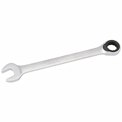 General description This metric ratcheting combination spanner set includes a 19mm open-end wrench with a 15-degree angle. The spanner features a ratcheting mechanism on the ring end, requiring only a 5-degree movement to turn fasteners, making it ideal for use in tight spaces. It is forged from durable chrome vanadium steel, hardened, tempered, and finished with a matte chrome coating for corrosion resistance and longevity. Technical specifications Size: 19mm Type: Ratcheting combination spanner Open end angle: 15° Ratcheting mechanism: 72 teeth, requiring only 5° to turn Material: Chrome vanadium steel Finish: Matte chrome plating Compatibility and accessories Compatible with standard metric fasteners Part of a set of ratcheting combination spanners Installation No installation required; simply select the appropriate size and use as needed Usage Designed for tightening and loosening nuts and bolts Ideal for confined spaces due to its ratcheting mechanism and angled open end Other