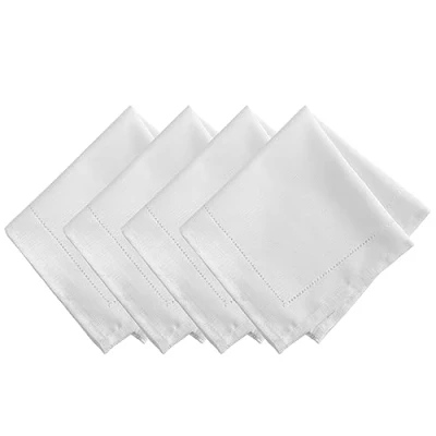 Elrene Home Fashions Alison Hemstitch Border Cloth Fabric Dinner Napkin, Set of 4, 17"x17", White