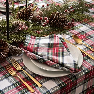 ELEGANT CHRISTMAS NAPKINS Say Merry Holidays with these elegant cloth napkins from Elrene Home Fashions. Our festive napkins add a touch of Christmas charm to any dining table. Pair with the matching classic Christmas tablecloth to complete the look. CLASSIC HOLIDAY PLAID Make Christmas memories with this set of holiday napkins. Each plaid napkin features a beautiful rustic plaid pattern. PREMIUM COTTON FABRIC NAPKINS Made from durable 100% cotton twill, each napkin in this 8 piece set measures 17 x 17 inches. These decorative party napkins are perfect for holiday or everyday use. FASHION & EASY CARE The classic tartan design and colorful print make this set a festive addition to your seasonal decor. Our reusable napkins are also machine washable, making them easy to maintain. Four generations of quality and fashion: Elrene Home Fashions has been designing and producing high-quality home decor since 1922. We focus on creating decorator looks and exciting designs for your home.