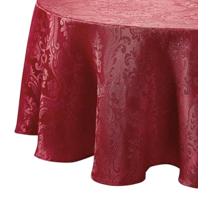 ELEGANT DAMASK PATTERN: Luxurious woven damask fabric adds a touch of sophistication to your table setting, perfect for both everyday use and special occasions. VERSATILE DESIGN & STYLING: Available in a variety of everyday and seasonal colorways. With sizes and shapes to fit most tables, you can effortlessly customize your dining setup to suit any occasion or decor style. Complete your table setting with coordinating napkins and placemats, available separately. PREMIUM QUALITY: Crafted from 100% durable polyester, our tablecloth offers both durability and elegance. The woven damask fabric adds a touch of elegance to your table setting, ensuring refined ambiance for every meal. STAIN & WATER RESISTANT: Designed for durability and practicality, our tablecloth is resistant to stains and water, making it ideal for everyday use and special occasions. EASY CARE: Our tablecloth is machine washable for effortless upkeep. Tumble dry on low heat and use a warm iron as needed.
