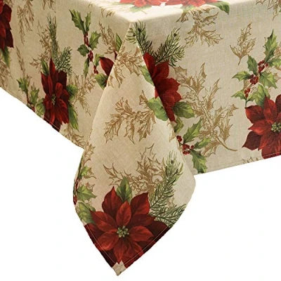 Elrene Home Fashions Festive Poinsettia Holiday Fabric Tablecloth, Multi, 60"x102" Rectangle Tablecloth