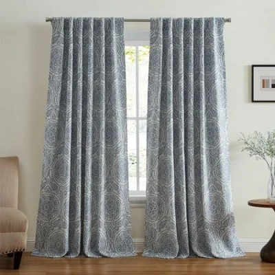 PRODUCT SPECIFICATIONS: Sold as an individual panel measuring 52 inches in width. Offered in two different length options: 84 inches and 95 inches long. Crafted from 94% Polyester & 6% Linen. ELEGANT MEDALLION BLOCK PRINT: Designed with a soft, luxurious drape and offered in gorgeous neutral shades, this curtain is perfect for every décor style. Its sophisticated medallion pattern adds a touch of timeless charm to your bedroom, dining room, living room, home office, or any space your home. BLACKOUT BENEFITS: Opaque fabric blocks out light, noise and helps to insulate windows during cold, winter months. Featuring a sewn in gray blackout liner crafted from 100% polyester, the Giovanni Medallion curtain prevents most light from entering windows to help darken any room for your best sleep. DUAL TOP TREATMENT: Offers a 2-in-1 construction with dual hanging options: Back tabs offer an elegant pleated style while the rod pocket creates a more casual, gathered look. The four inch rod pocket/back tabs are recommended with up to a 2 inch rod for maximum movement. Pair with our Elrene Home Fashions Serena curtain rod for a coordinated look (sold separately). EASY CARE: For quick and easy upkeep of this blackout panel, we recommend a machine wash in cold water on a delicate cycle. Tumble dry on low and use a cool iron as needed to remove stubborn wrinkles.