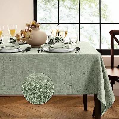 Elrene Home Fashions Laurel Solid Texture Water and Stain Resistant Tablecloth, 60"X120" Rectangle, Sage
