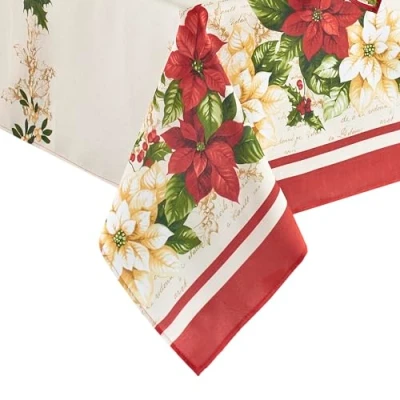 Elrene Home Fashions Red and White Poinsettia Holiday Wrinkle Resistant Fabric Tablecloth, 60" x 102" Rectangle, Multi