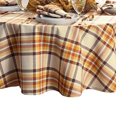 Elrene Home Fashions Russet Harvest Woven Plaid Cotton Tablecloth for Fall/Thanksgiving, 70" Round