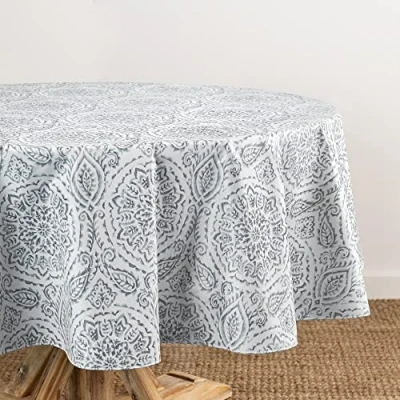 ELEGANT PAISLEY TABLECLOTH: Featuring a bohemian mandala-and-paisley printed design offered in 3 soft colorways, the Savannah Boho reusable paisley vinyl tablecloth is perfect for indoor or outdoor use in the spring and summer months. VERSATILE DESIGN: Excellent for special occasions, events, dinners, parties, picnics, barbeques, and everyday use for every room in your home, this dining linen comes in a variety of sizes and shapes, including round, square, rectangle, and oval. DURABLE & SLIP-PROOF: Made from thick premium-quality vinyl, our heavy-duty waterproof tablecloth is designed to withstand repeated use. A polyester flannel backing holds the tablecloth in place and provides extra durability. The hemmed edges add a finished look and prevent wear and tear. WATER- & STAIN-RESISTANT: Our large tablecloth is 100% waterproof and spill-proof. The vinyl face fabric easily wipes clean with a damp cloth or sponge. The flannel backing can be steamed to release unwanted creases and keep your tablecloth wrinkle-free. FOUR GENERATIONS OF QUALITY & FASHION: Elrene Home Fashions has been designing and producing high-quality home decor since 1922. We focus on creating decorator looks and exciting designs for your home.