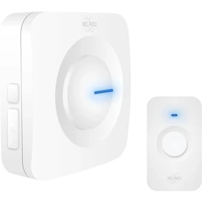 Complete doorbell set with two battery-powered receivers, so you can place it wherever you want Interference-free digital signal with a range of up to 300 m Volume up to 110dB, adjustable to 5 volumes and 64 different melodies Flashing LED light in the receiver to indicate that the door is ringing Compact, waterproof doorbell that fits in any door frame, Manufacturer: ELRO EUROPE