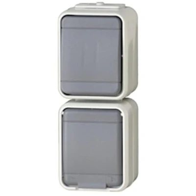 Elso 448629 Universal Switch/Socket Vertical 10/16A AquaTop Plug In Terminal, Protective Contact Socket, Surface Mounted 2 Way, IP44 Light/Basalt Grey