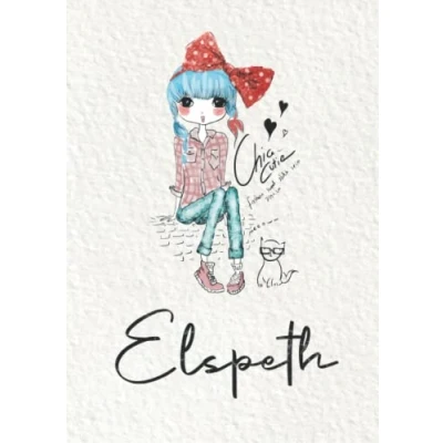 Elspeth: Notebook A5 Personalized name Elspeth Birthday gift for women, girl, mom, sister, daughter Cover: Fashion girl with cat 120 lined pages journal, small size (ca. 6 x 9 inches)