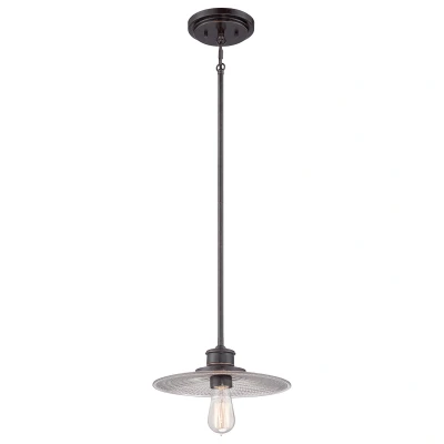 This mini pendant is reminiscent of the coastal board-walks of the past. Finished in Imperial Bronze. The Victorian Edison style bulb adds the perfect vintage touch and highlights the clear ribbed glass. Also available in this range; Wall Light, and Chandelier.
