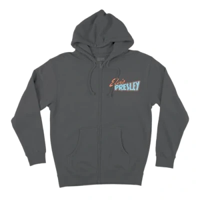 Official Elvis Presley Merchandise Features retro Elvis Presley logo in orange and blue on the left chest Unisex standard fit with full zip closure, front pockets, and adjustable drawstring hood Made from a soft 50% cotton / 50% polyester blend for cozy comfort and durability
