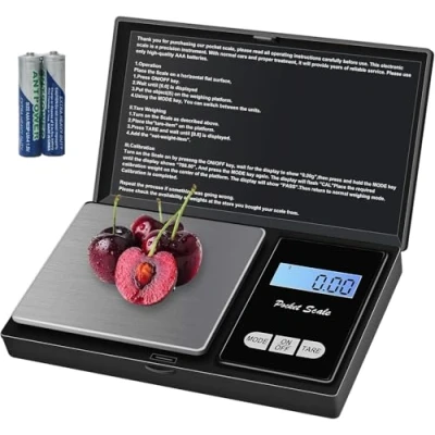 ✅HIGH ACCURACY -This digital kitchen scale features a high-precision strain gauge sensor, ensuring fast and accurate weight measurements. It is capable of weighing up to 500 grams with an accuracy of 0.01 grams, making it an ideal milligram scale for measuring jewelry, gold, diamonds, gemstones, pharmaceuticals, herbs, coins, and other small items. ✅High quality and portability:Constructed from stainless steel and ABS plastic, this portable scale offers durability and ease of cleaning. Its compact dimensions of 12.7 x 7.5 x 1.8 cm make it highly portable and space-efficient, allowing for convenient use at any time. ✅SMART DESIGN -The scale supports seven measurement units—grams (g), carats (ct), ounces (oz), troy ounces (ozt), pennyweights (dwt), taels (tl), and grains (gn)—meeting a variety of weighing needs. ✅LCD Display: Equipped with a built-in blue backlit LCD display, the scale ensures clear readability even in low-light conditions. It also features automatic zero calibration and an auto power-off function to conserve energy. Additionally, the scale includes a protective cover for enhanced durability and safe storage. ✅Wide Usage:This portable scale is suitable for a wide range of applications, including the weighing of powders, coffee beans, gems, jewelry, coins, and other small objects. ✅LONG STANDBY TIME & 100% SATISFACTION SERVICE -Powered by two AAA batteries, the scale provides long-lasting and stable performance, complemented by a 60-second auto power-off function for energy efficiency. Should any issues arise, our customer service team is committed to providing prompt and hassle-free support to ensure complete customer satisfaction., Manufacturer: elzle