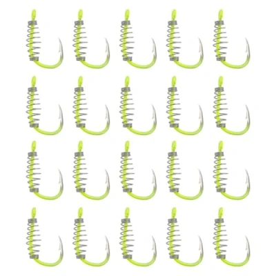 Ideal for Power Bait: Specifically designed for use with power bait, these hooks are perfect for enhancing your fishing experience and attracting more fish during your outings. High Carbon Steel Construction: Made from high carbon steel, these spring fishing hooks offer excellent strength and resilience for catching various fish species. Barbed Design for Secure Grip: Each hook features a barbed design that ensures a strong hold on fish, reducing the likelihood of losing your catch during retrieval. Metal Spring Feature: The integrated metal spring enhances the hook's performance by allowing for better bait retention and providing more effective presentations. Pack of 20 for Convenience: This set includes 20pcs hooks, ensuring you have plenty of spares for long fishing trips or when tackling multiple fishing spots.