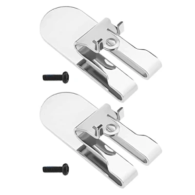 Belt hook clip is compatible with DeWalt 18V power tools, DCF620B Type 1, DCF620D2 Type 1, DCF620D2-AR Type 1, DCF620D2-B2 Type 1, DCF620D2-B3 Type 1, DCF620D2-BR Type 1, DCF620M2 Type 1, DCF622B Type 1, DCF622M2 Type 1. The replacement part number for the belt hooks clip is N435687. The belt hook clip is installed on the bottom of the handle assembly on the tool model. Made of metal material, sturdy and long-lasting. Package includes 2 pieces of belt hook clips and 2 pieces of fastening screws., Weight: 0.1322773572 pounds, Manufacturer: eMagTech