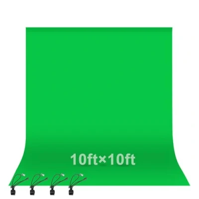 Package content: 10 X 10ft muslin green screen backdrop, 4 spring clamps. NOTE: The backdrop stand is not included. Machine Washable: EMART green backdrop curtain material is durable, it can be cleaned in a washing machine for daily cleaning. If necessary, please iron the surface with steam iron. Easy to Setup & Use: A rod pocket was sewn on the 10ft edge for crossbar install, equipped with 4 spring clamps can keep the backdrop tight and flat. Wide Application: Lightweight and soft green screen is perfect for newborn photography, YouTube, professional photo studio shooting, interviews, conference recording, etc. Green Screen Backdrop: 10ft wide 10ft tall green background surface provides pure green, which can help you better use in live gaming, Zoom and streaming.