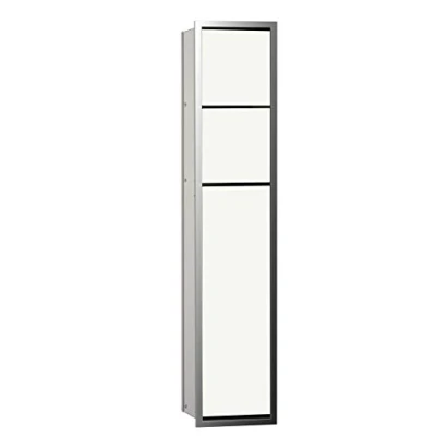 The all-rounder: the bathroom cabinet as a flush-mounted model offers storage space for all toilet utensils without taking up space in the bathroom and is particularly easy to install. Practical design: with innovative toilet paper dispenser, toilet brush set holder and extra compartment, everything is hidden in a stain and discreetly hidden in the wall. High-quality look: The multi-divided glass front in Optiwhite is a subtle eye-catcher and fits perfectly into the bathroom thanks to flush installation and handle-free look. ASIS 150: The ASIS 150 module series is characterised by its particularly narrow products, which enhance any bathroom with glossy fronts and create valuable storage space. Dimensions and details: Emco ASIS 150 bathroom built-in wardrobe all-in-1 ideal for the guest toilet, multi-door in optiwhite, dimensions: 16.8 cm x 80.9 cm x 15.3 cm (W x H x D); item number: 975027850.