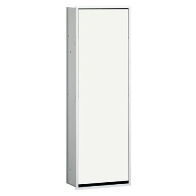 Cabinet module, flush-mounted model With glass door and 2 aluminium shelves Please always order flush-mounted modules with mounting frame