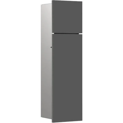 Emco Asis Pure 975551503 Flush Mounted Cupboard Module, Bathroom Cabinet as Toilet Roll Holder and Brush Holder, Tall with Push to Open Function, Grey Matt Stop on the Right