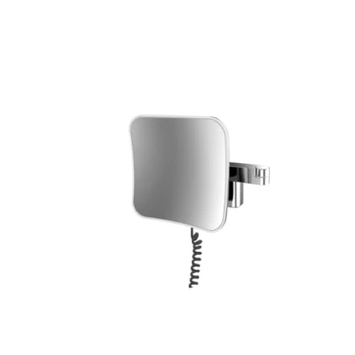 Emco EVO LED Cosmetic and Shaving Mirror on Double Articulated Arm, Square Vanity with Lighting for Wall Mounting, Dimmable Magnifying (5x), Chrome, Without Cable