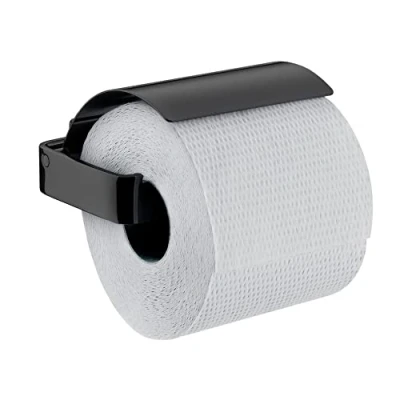 EMCO Loft Wall Mounted Toilet Paper Holder, Modern Holder with Lid, Aluminium Matte Black