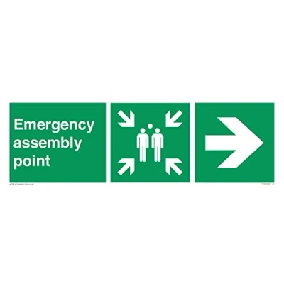 E909 : Right arrow (90 deg supplimentary) This sign is made from vinyl / sticker Air Release vinyl makes it easy to stick to flat, clean surfaces without bubbles. Not for rough, plastic or dusty surfaces. 62 landscape Sign Text: Emergency assembly point directional Right arrow